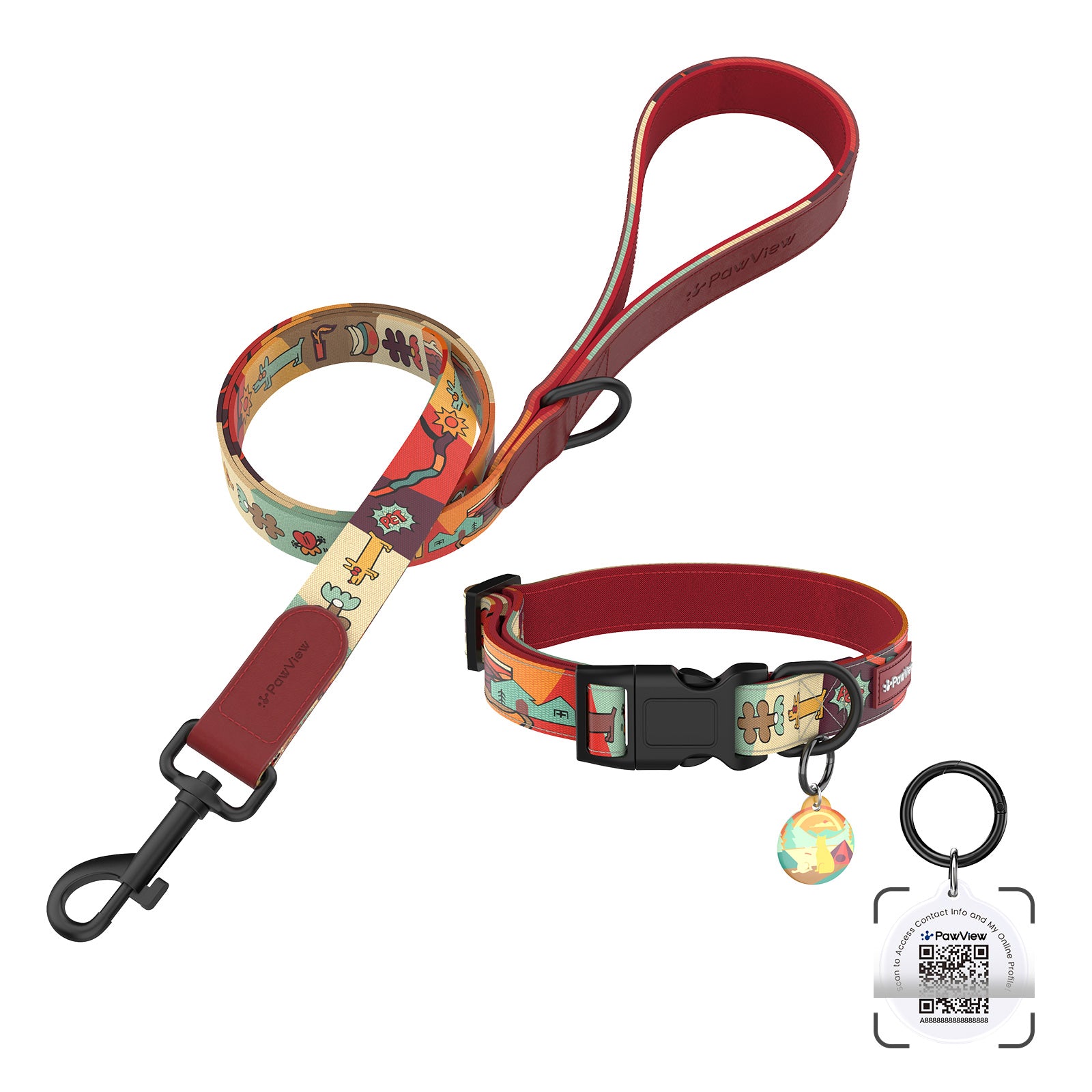 | Product Name | PawView Time Series Dog Collar & Leash Set with Smart QR ID Tag – Sunrise Design |